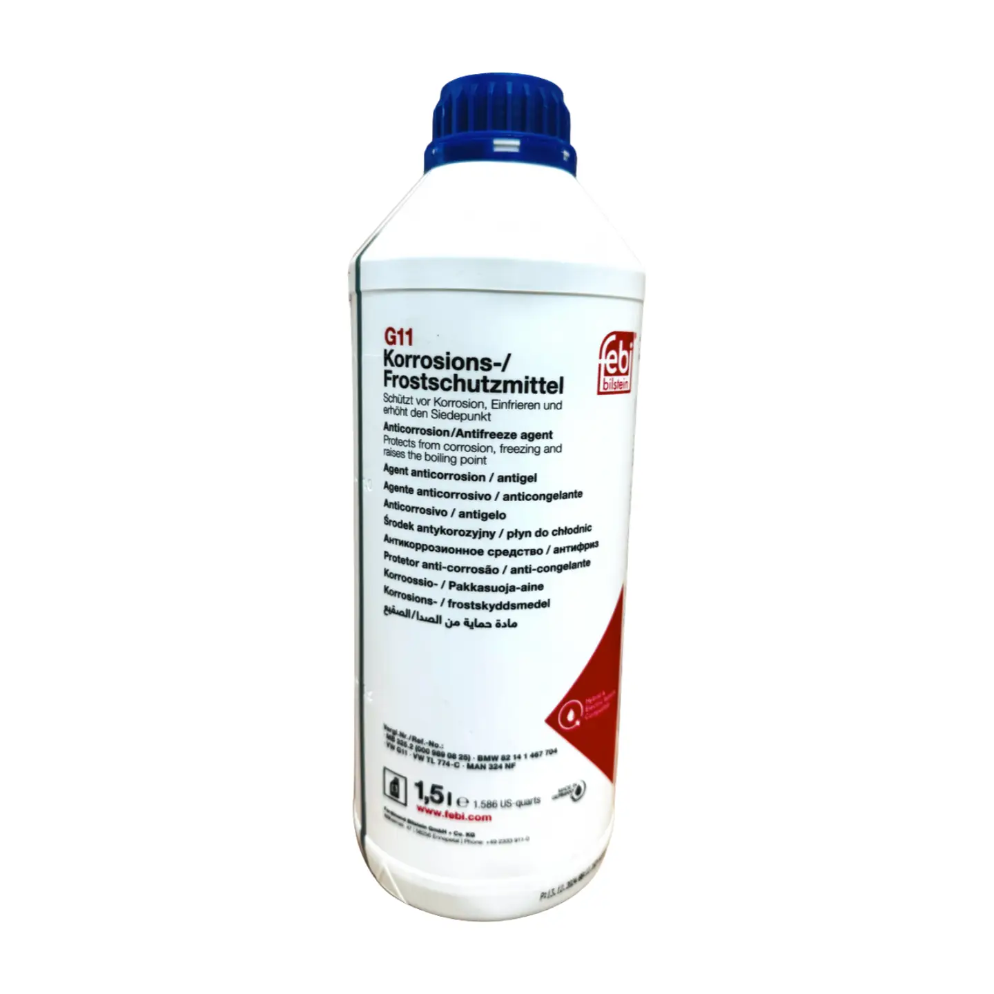 Febi Bilstein Coolant – Antifreeze 1.5L protects engines against corrosion, freezing, and overheating. OEM-approved for Mercedes, BMW, Audi, VW, Porsche & Range Rover.
